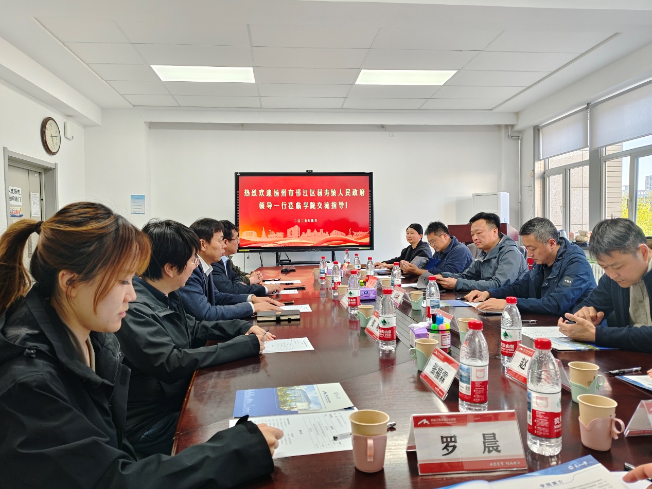 李晨介绍了杨寿镇的产业发展现状、资源优势与未来规划,对学校、学院给予杨寿镇的支持和帮助以及学院挂职团员在科技创新、产学研合作等方面的辛勤付出表示感谢,希望在双高“荟邗城”人才邀客活动等方面与学校、学院继续开展深入合作。