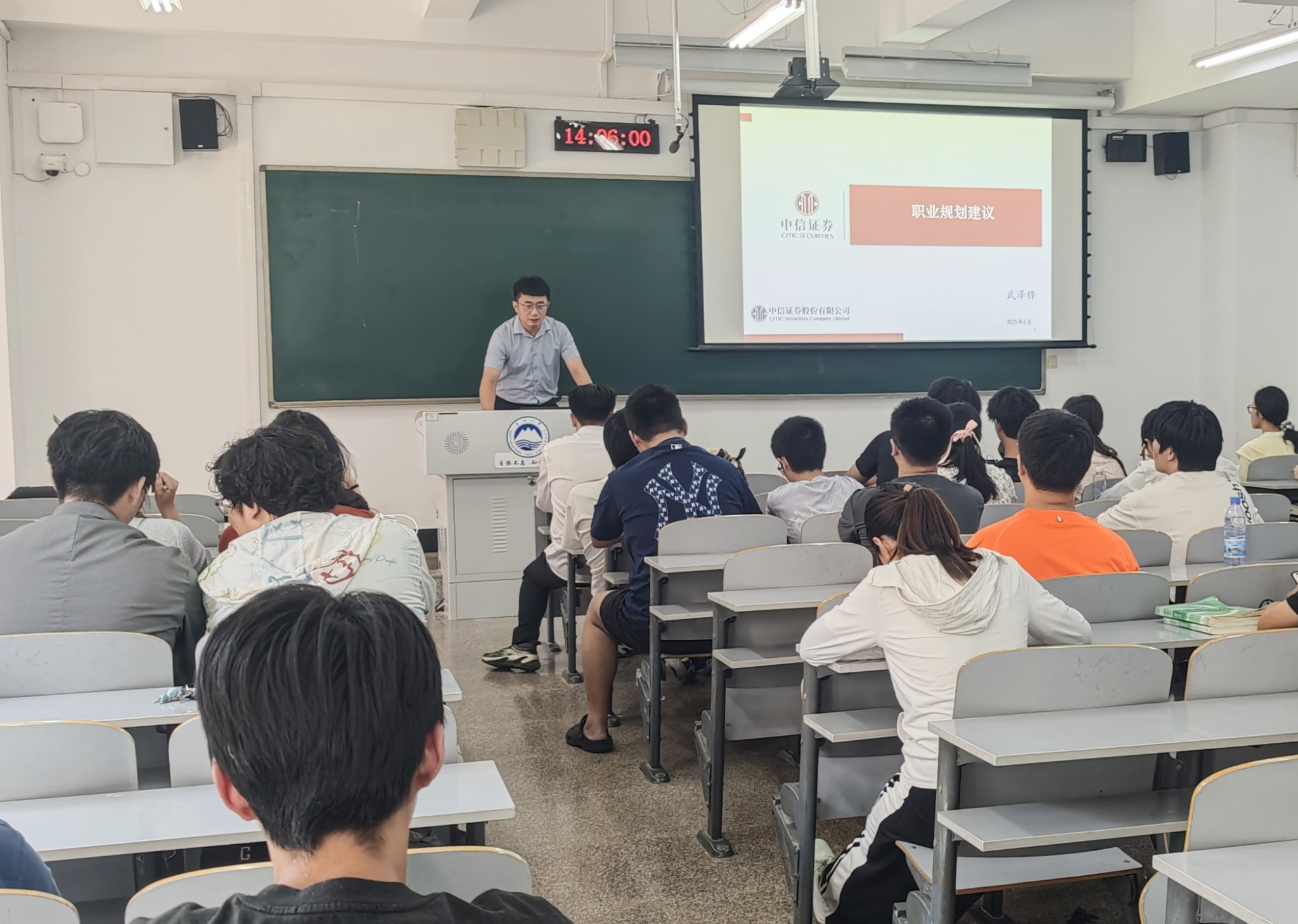 仪式结束后,中信证券在校内举办了“应届生就业和金融赋能”主题讲座。主讲人结合行业趋势,围绕金融行业就业前景、毕业生职业生涯规划等内容进行了讲解,分享了求职技巧和职场经验。