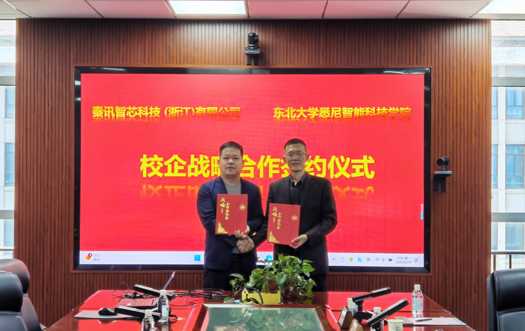 5月19日,悉尼学院与秦讯智芯科技(浙江)有限公司在科技楼6029会议室举行校企战略合作签约仪式。悉尼学院院长史闻博,秦讯智芯科技(浙江)有限公司总裁龚燕华、技术总监胡淞然等出席仪式。双方代表签署了校企产学研合作协议。